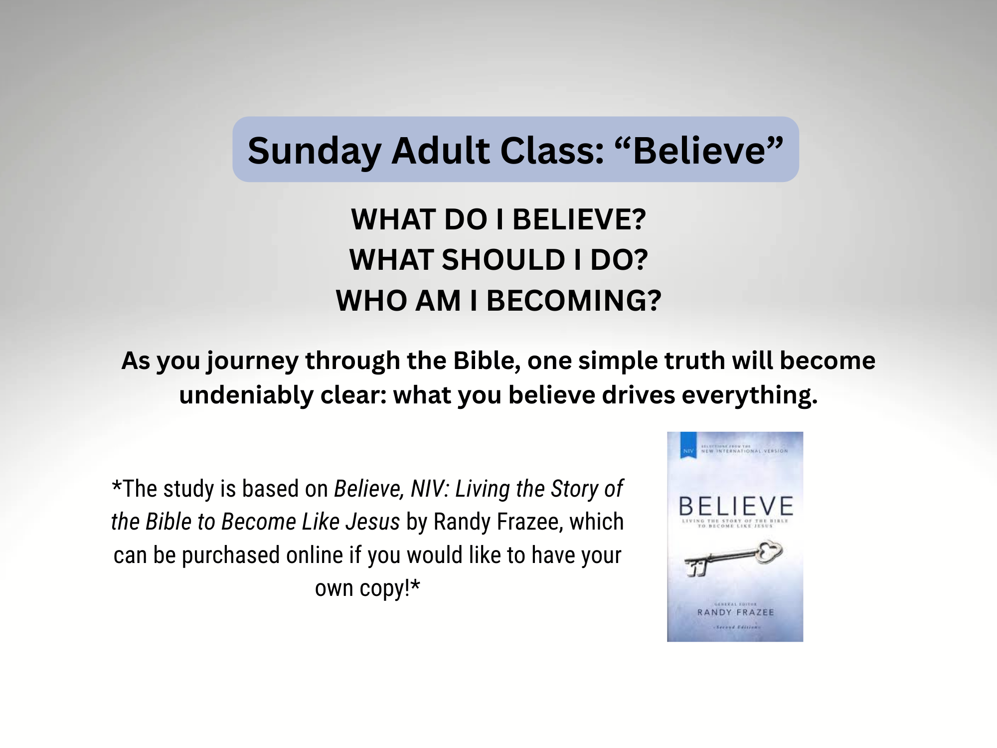 Join us Sunday mornings for an adult class at 9:00 AM facilitated by Ben Jones!